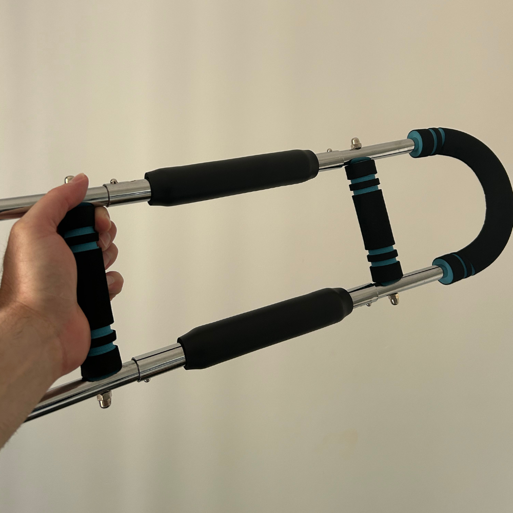 It uses built-in spring-loaded resistance, no bands, no hydraulics. Simple adjust up or down to increase the intensity and strength progression.